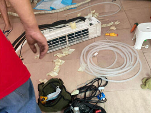 濕手拆卸空調(diào)的操作可能會使水附著在零件上,造成觸電。還應(yīng)注意不要用灑水的方法清洗空調(diào)。在潮濕的環(huán)境中修理設(shè)備時(shí),必須接地,以防止觸電。
