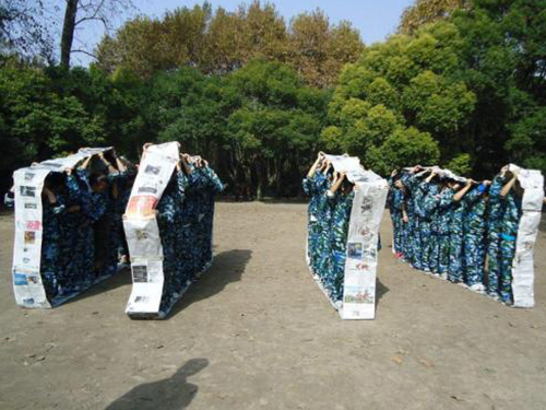項目介紹:提供的只有報紙,剪刀,膠帶。靠大家的智慧和團隊的協(xié)作走完一段不容易的路程。