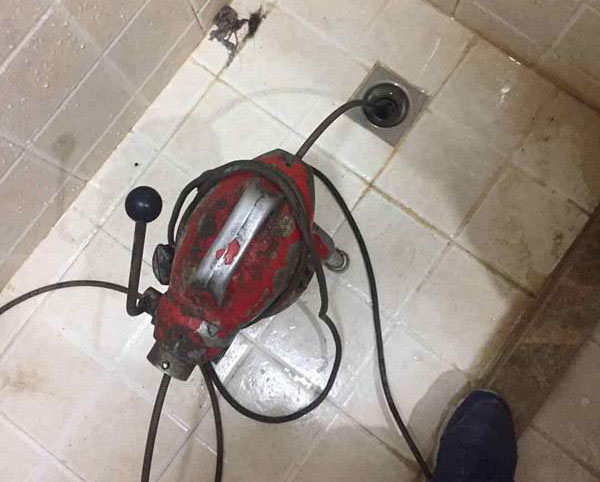 找來通廁所的工具進(jìn)行手工搖擺,鉆入進(jìn)去。