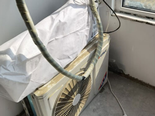 (2)拆開室外機(jī)銅管連接器(塑料布包好,避免進(jìn)土),拆開室外機(jī)電線連接器(記住線的順序)。