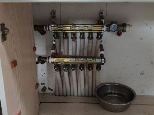 2、準備工作完畢后,可先打開地暖熱水進口管。