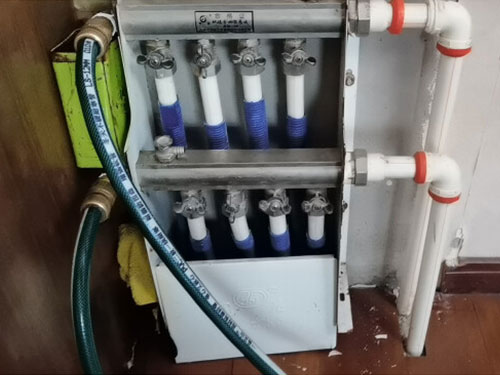 4、當(dāng)我們將分水閥都一次關(guān)閉之后,只留下一個處于開啟狀態(tài),并且在后面安裝水龍頭接一段軟管通到自家下水道。