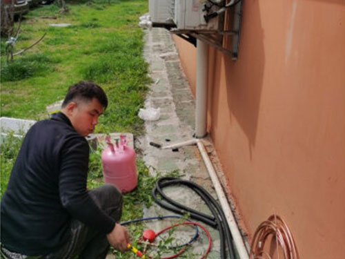 1、機前應先將空調機內的制冷液收進室外機組中。